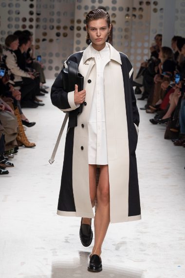 Completi in pelle color caramello e tubini in black leather con drappeggi e ancora stampe tartan o a rgihe sfilano alla Milano Fashion Week sulla passerella Primavera/Estate 2026 di Tod's.
