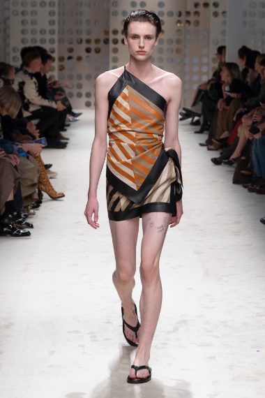 Completi in pelle color caramello e tubini in black leather con drappeggi e ancora stampe tartan o a rgihe sfilano alla Milano Fashion Week sulla passerella Primavera/Estate 2026 di Tod's.