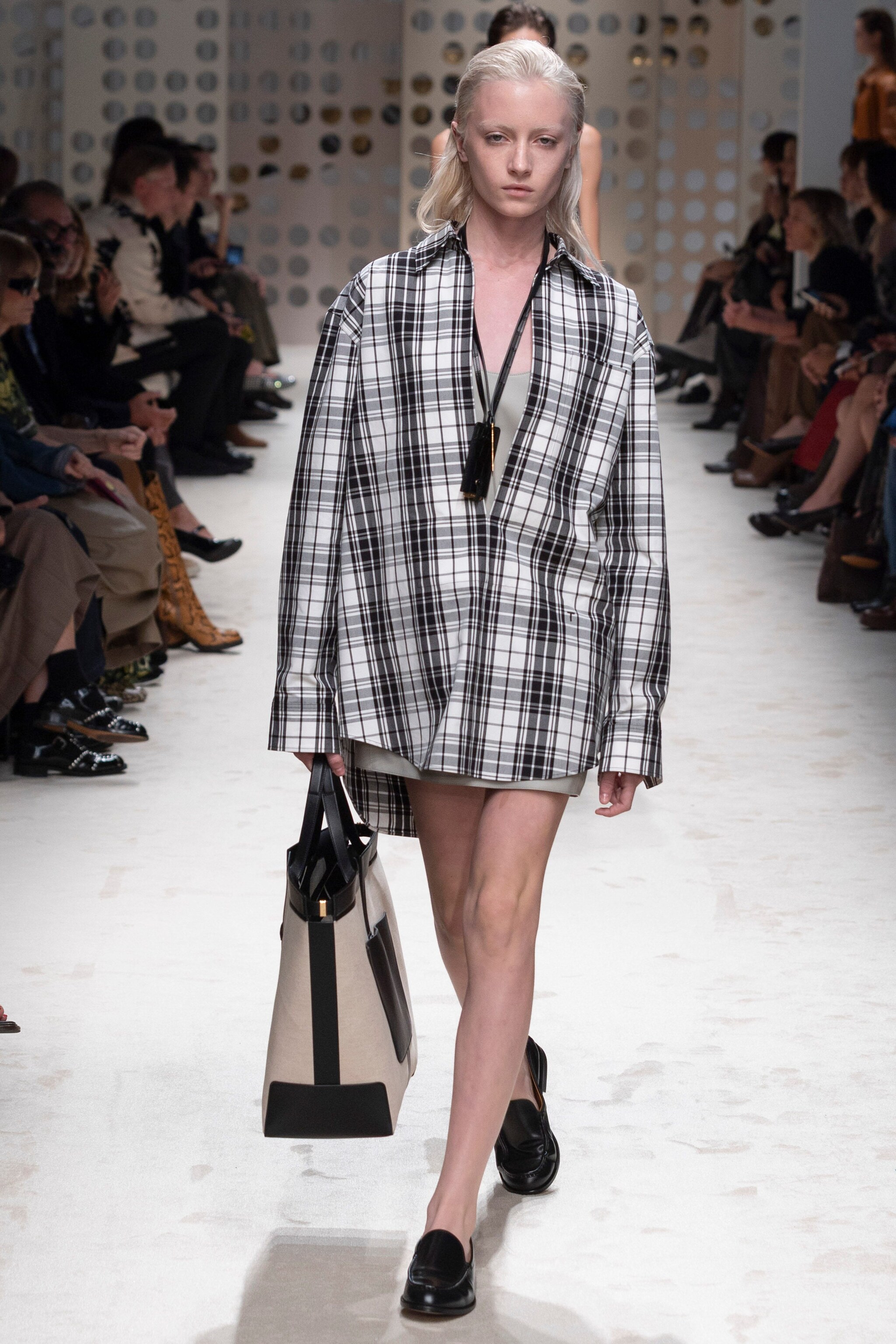 Completi in pelle color caramello e tubini in black leather con drappeggi e ancora stampe tartan o a rgihe sfilano alla Milano Fashion Week sulla passerella Primavera/Estate 2026 di Tod's.