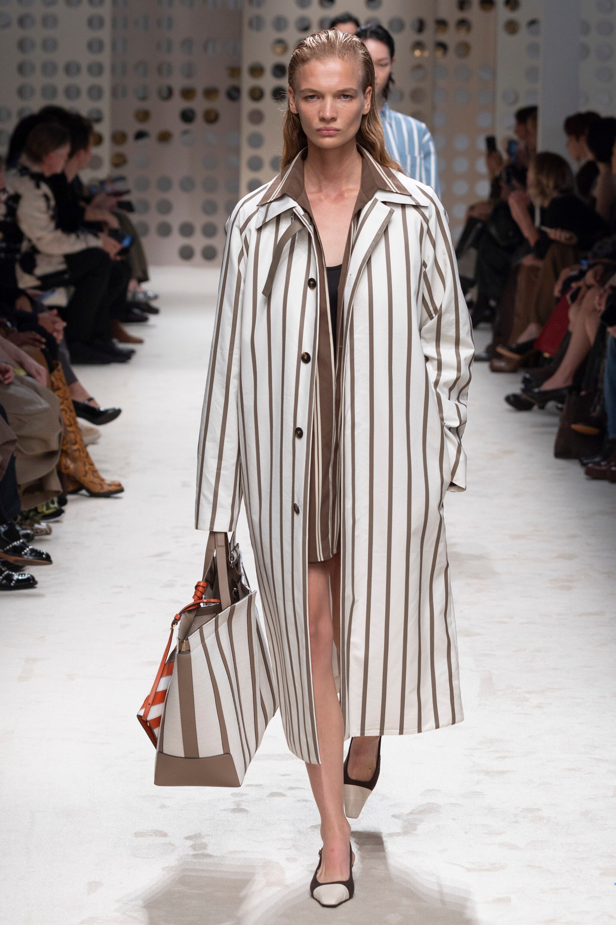 Completi in pelle color caramello e tubini in black leather con drappeggi e ancora stampe tartan o a rgihe sfilano alla Milano Fashion Week sulla passerella Primavera/Estate 2026 di Tod's.