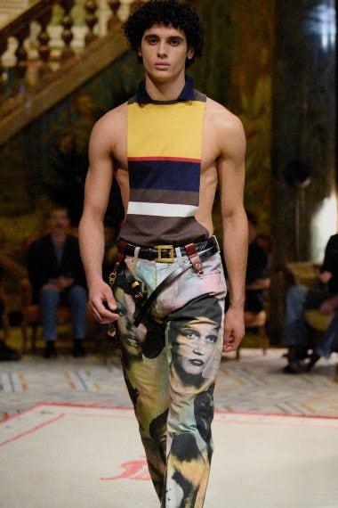 Sfila alla Milano Fashion Week il nuovo corso di Versace sotto la guida di Dario Vitale. Sulla passerella Primavera/Estate 2026 appaiono giacche dalle spalle maxi, pantaloni a vita alta, canotte dalle scollature laterali, dettagli in pelle o con borchie e tutte le icone degli anni '80.