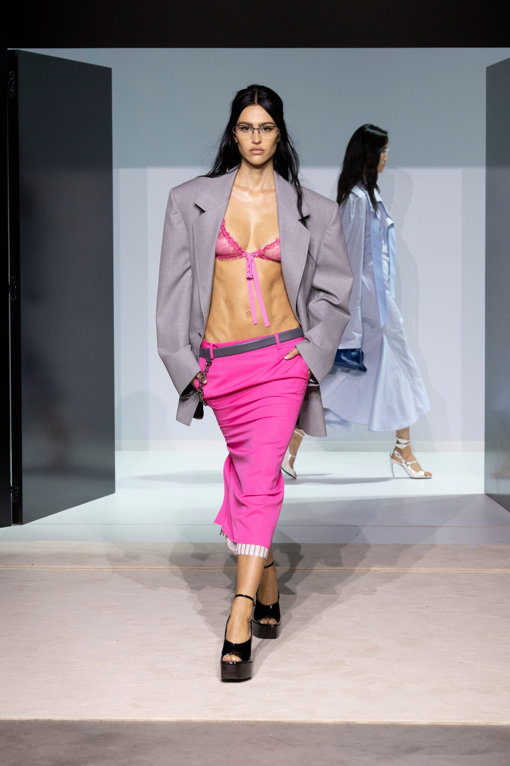 Blazer e trench dalle spalle oversize, vestaglie e pigiami che diventano abiti e completi da sera e ancora tutine aderenti in pizzo, slipdress e gonne a vita bassa sfilano alla Milano Fashion Week sulla passerella Primavera/Estate 2026 di The Attico