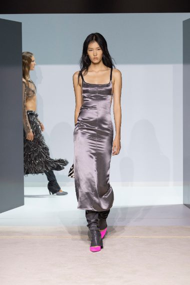 Blazer e trench dalle spalle oversize, vestaglie e pigiami che diventano abiti e completi da sera e ancora tutine aderenti in pizzo, slipdress e gonne a vita bassa sfilano alla Milano Fashion Week sulla passerella Primavera/Estate 2026 di The Attico