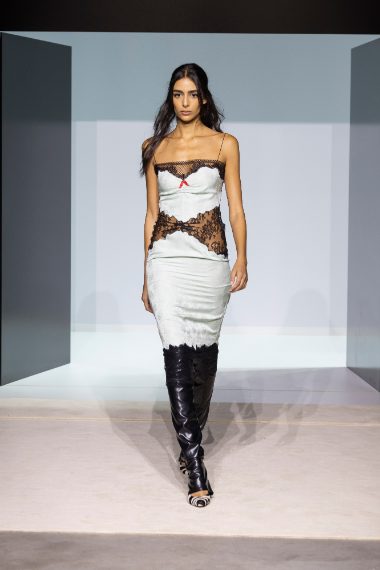 Blazer e trench dalle spalle oversize, vestaglie e pigiami che diventano abiti e completi da sera e ancora tutine aderenti in pizzo, slipdress e gonne a vita bassa sfilano alla Milano Fashion Week sulla passerella Primavera/Estate 2026 di The Attico