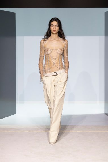 Blazer e trench dalle spalle oversize, vestaglie e pigiami che diventano abiti e completi da sera e ancora tutine aderenti in pizzo, slipdress e gonne a vita bassa sfilano alla Milano Fashion Week sulla passerella Primavera/Estate 2026 di The Attico
