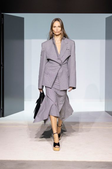 Blazer e trench dalle spalle oversize, vestaglie e pigiami che diventano abiti e completi da sera e ancora tutine aderenti in pizzo, slipdress e gonne a vita bassa sfilano alla Milano Fashion Week sulla passerella Primavera/Estate 2026 di The Attico