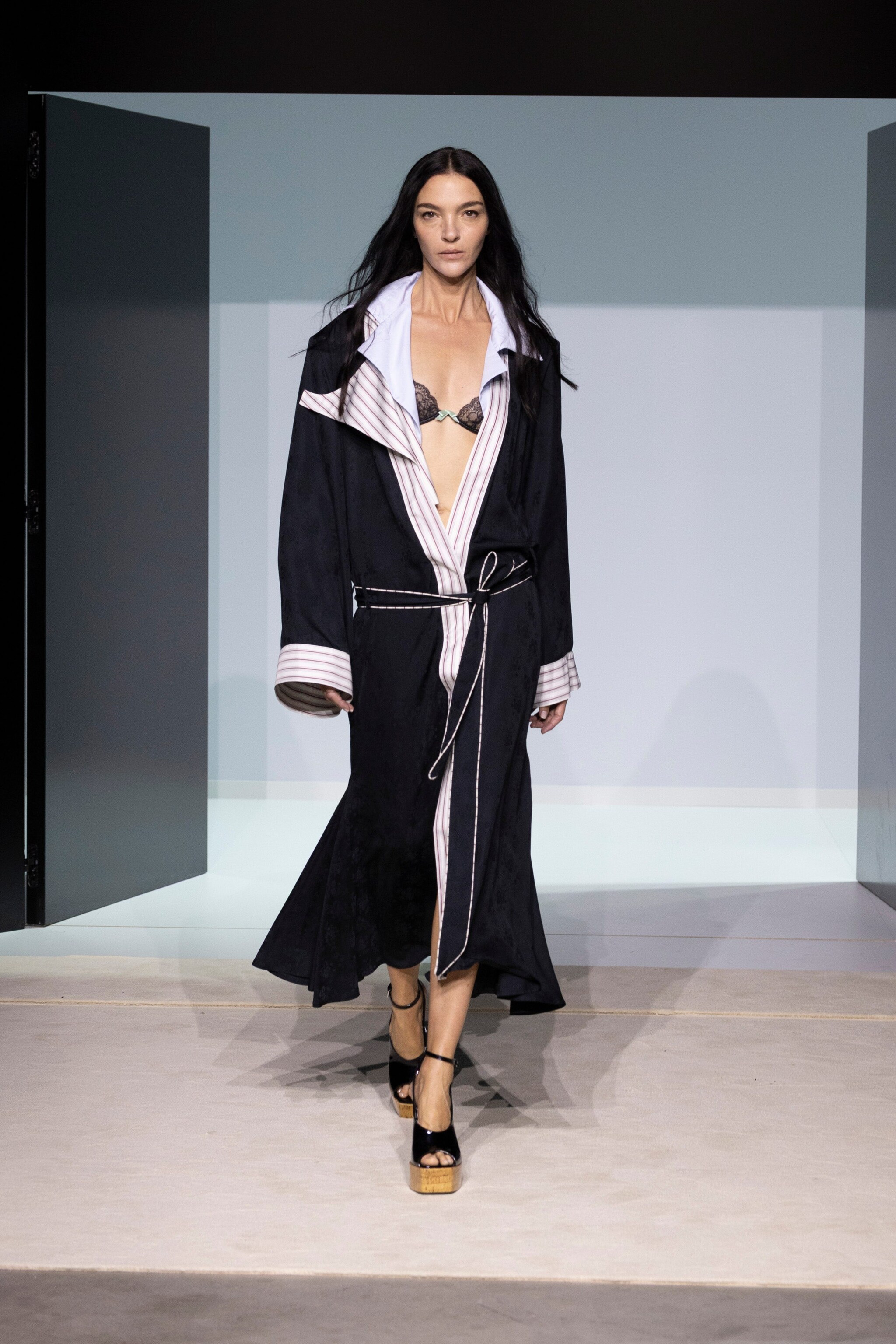 Blazer e trench dalle spalle oversize, vestaglie e pigiami che diventano abiti e completi da sera e ancora tutine aderenti in pizzo, slipdress e gonne a vita bassa sfilano alla Milano Fashion Week sulla passerella Primavera/Estate 2026 di The Attico