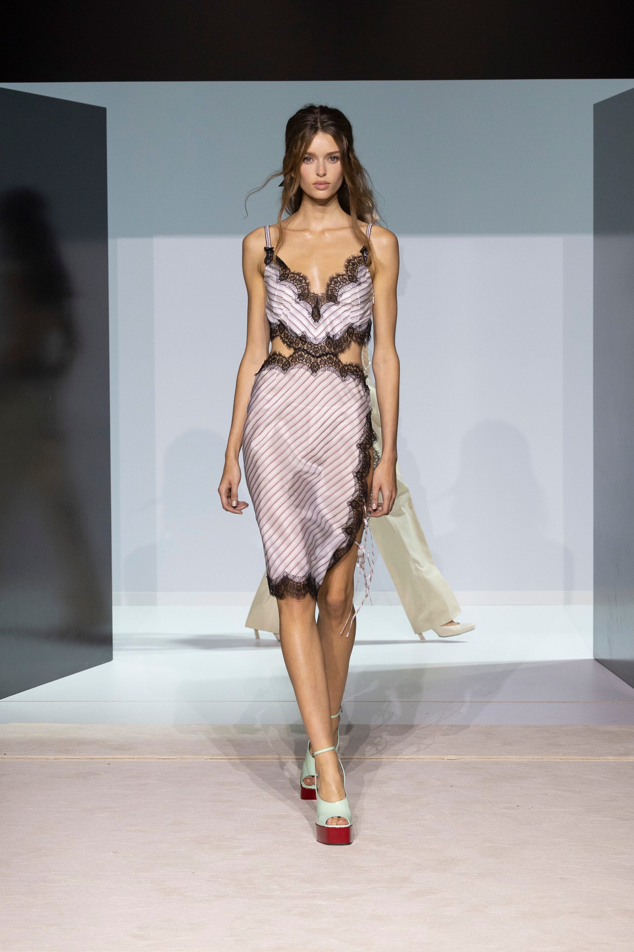 Blazer e trench dalle spalle oversize, vestaglie e pigiami che diventano abiti e completi da sera e ancora tutine aderenti in pizzo, slipdress e gonne a vita bassa sfilano alla Milano Fashion Week sulla passerella Primavera/Estate 2026 di The Attico