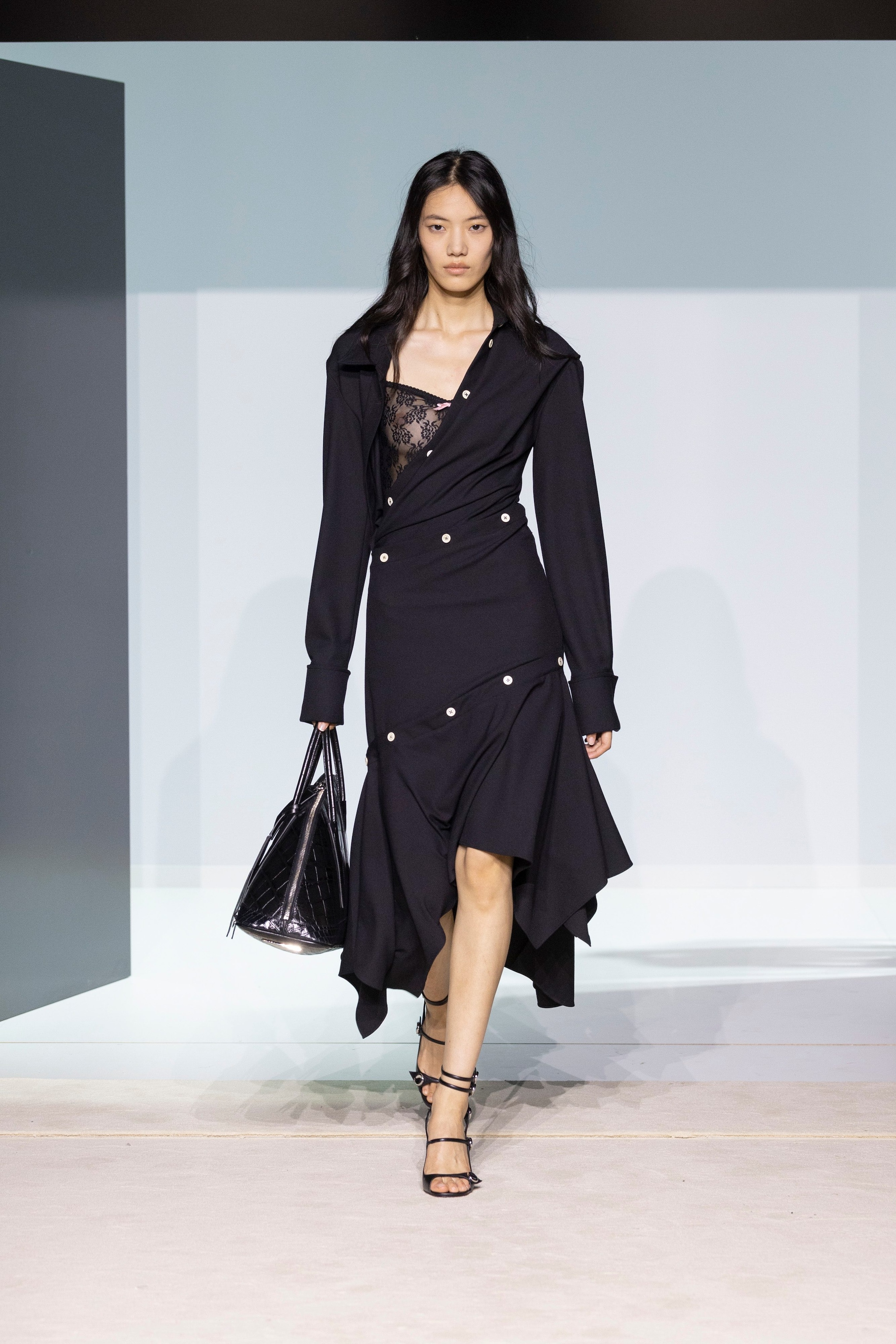 Blazer e trench dalle spalle oversize, vestaglie e pigiami che diventano abiti e completi da sera e ancora tutine aderenti in pizzo, slipdress e gonne a vita bassa sfilano alla Milano Fashion Week sulla passerella Primavera/Estate 2026 di The Attico