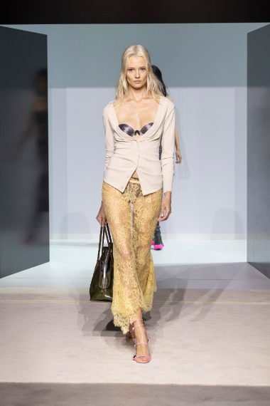 Blazer e trench dalle spalle oversize, vestaglie e pigiami che diventano abiti e completi da sera e ancora tutine aderenti in pizzo, slipdress e gonne a vita bassa sfilano alla Milano Fashion Week sulla passerella Primavera/Estate 2026 di The Attico