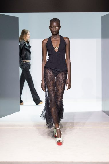 Blazer e trench dalle spalle oversize, vestaglie e pigiami che diventano abiti e completi da sera e ancora tutine aderenti in pizzo, slipdress e gonne a vita bassa sfilano alla Milano Fashion Week sulla passerella Primavera/Estate 2026 di The Attico