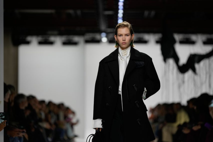 Sfila alla Milano Fashion Week la prima collezione disegnata da Louise Trotter per Bottega Veneta. Sulla passerella Primavera/Estate 2026 appaiono abiti in pelle drappeggiata e completi con l'iconico intreccio della Maison, sfilano leggiadre piume e frange che creano inaspettati volumi su giacche e bluse.