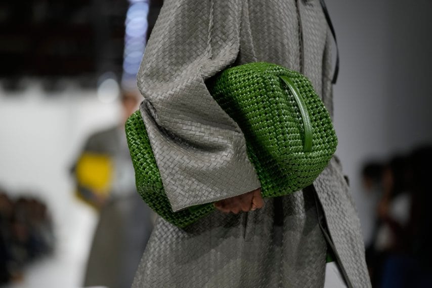 Sfila alla Milano Fashion Week la prima collezione disegnata da Louise Trotter per Bottega Veneta. Sulla passerella Primavera/Estate 2026 appaiono abiti in pelle drappeggiata e completi con l'iconico intreccio della Maison, sfilano leggiadre piume e frange che creano inaspettati volumi su giacche e bluse.