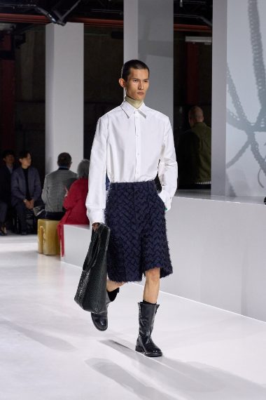 Sfila alla Milano Fashion Week la prima collezione disegnata da Louise Trotter per Bottega Veneta. Sulla passerella Primavera/Estate 2026 appaiono abiti in pelle drappeggiata e completi con l'iconico intreccio della Maison, sfilano leggiadre piume e frange che creano inaspettati volumi su giacche e bluse.