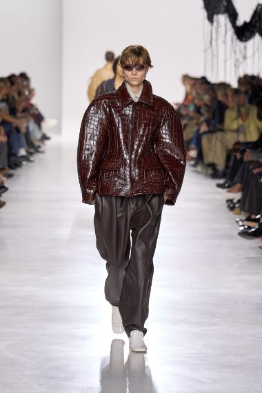 Sfila alla Milano Fashion Week la prima collezione disegnata da Louise Trotter per Bottega Veneta. Sulla passerella Primavera/Estate 2026 appaiono abiti in pelle drappeggiata e completi con l'iconico intreccio della Maison, sfilano leggiadre piume e frange che creano inaspettati volumi su giacche e bluse.
