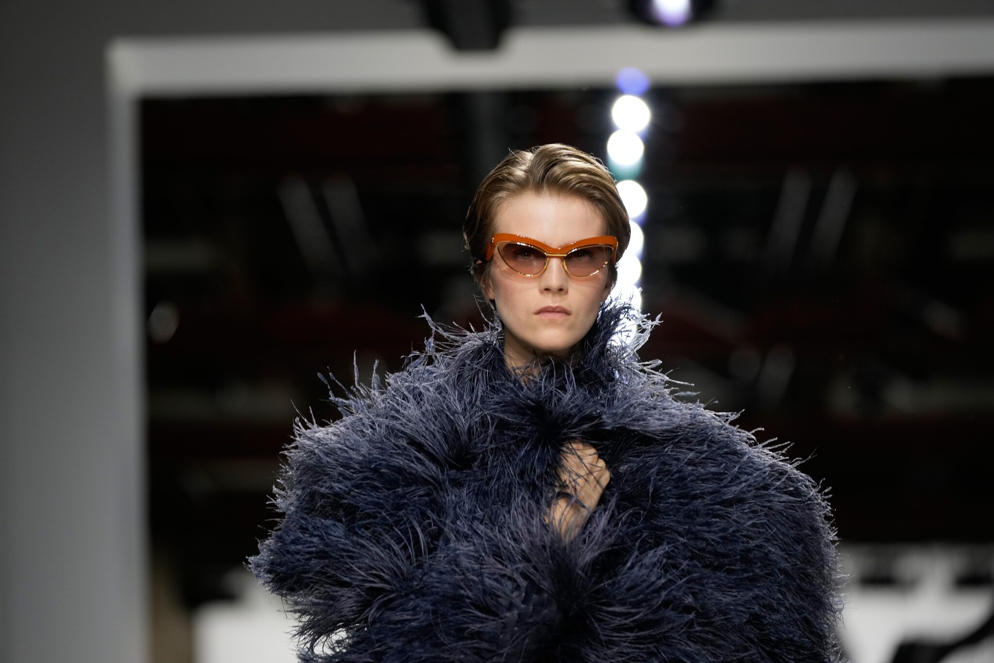 Sfila alla Milano Fashion Week la prima collezione disegnata da Louise Trotter per Bottega Veneta. Sulla passerella Primavera/Estate 2026 appaiono abiti in pelle drappeggiata e completi con l'iconico intreccio della Maison, sfilano leggiadre piume e frange che creano inaspettati volumi su giacche e bluse.