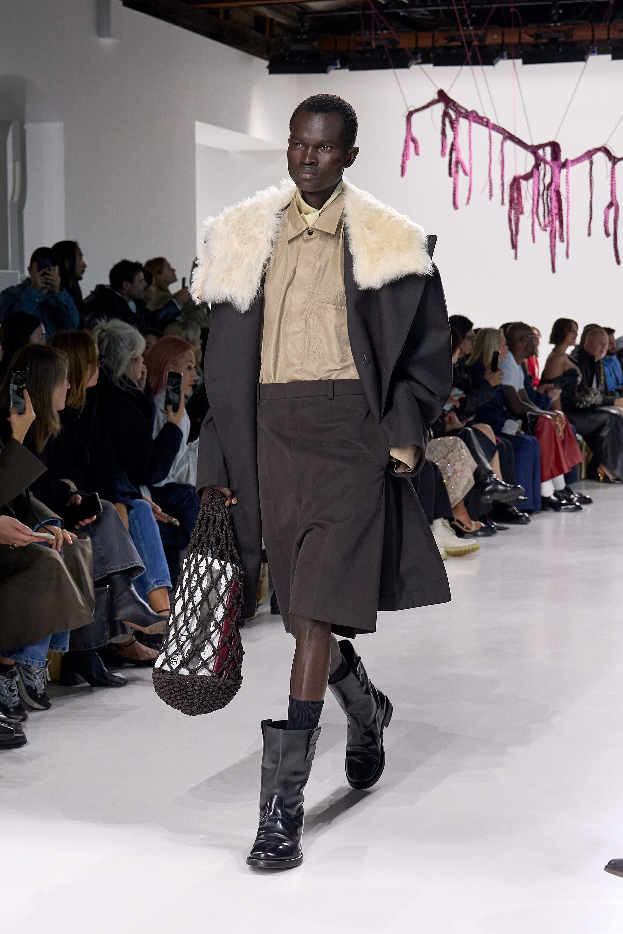 Sfila alla Milano Fashion Week la prima collezione disegnata da Louise Trotter per Bottega Veneta. Sulla passerella Primavera/Estate 2026 appaiono abiti in pelle drappeggiata e completi con l'iconico intreccio della Maison, sfilano leggiadre piume e frange che creano inaspettati volumi su giacche e bluse.