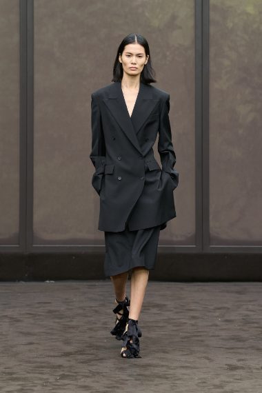 Fantasie animalier, abiti in seta dai tagli asimmetrici e con lunghe frange, trench coat e completi oversize sfilano alla Milano Fashion Week sulla passerella Primavera/Estate 2026 di Ferragamo
