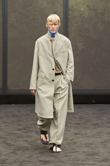 Fantasie animalier, abiti in seta dai tagli asimmetrici e con lunghe frange, trench coat e completi oversize sfilano alla Milano Fashion Week sulla passerella Primavera/Estate 2026 di Ferragamo