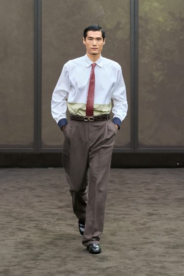 Fantasie animalier, abiti in seta dai tagli asimmetrici e con lunghe frange, trench coat e completi oversize sfilano alla Milano Fashion Week sulla passerella Primavera/Estate 2026 di Ferragamo