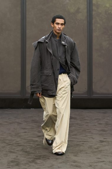 Fantasie animalier, abiti in seta dai tagli asimmetrici e con lunghe frange, trench coat e completi oversize sfilano alla Milano Fashion Week sulla passerella Primavera/Estate 2026 di Ferragamo