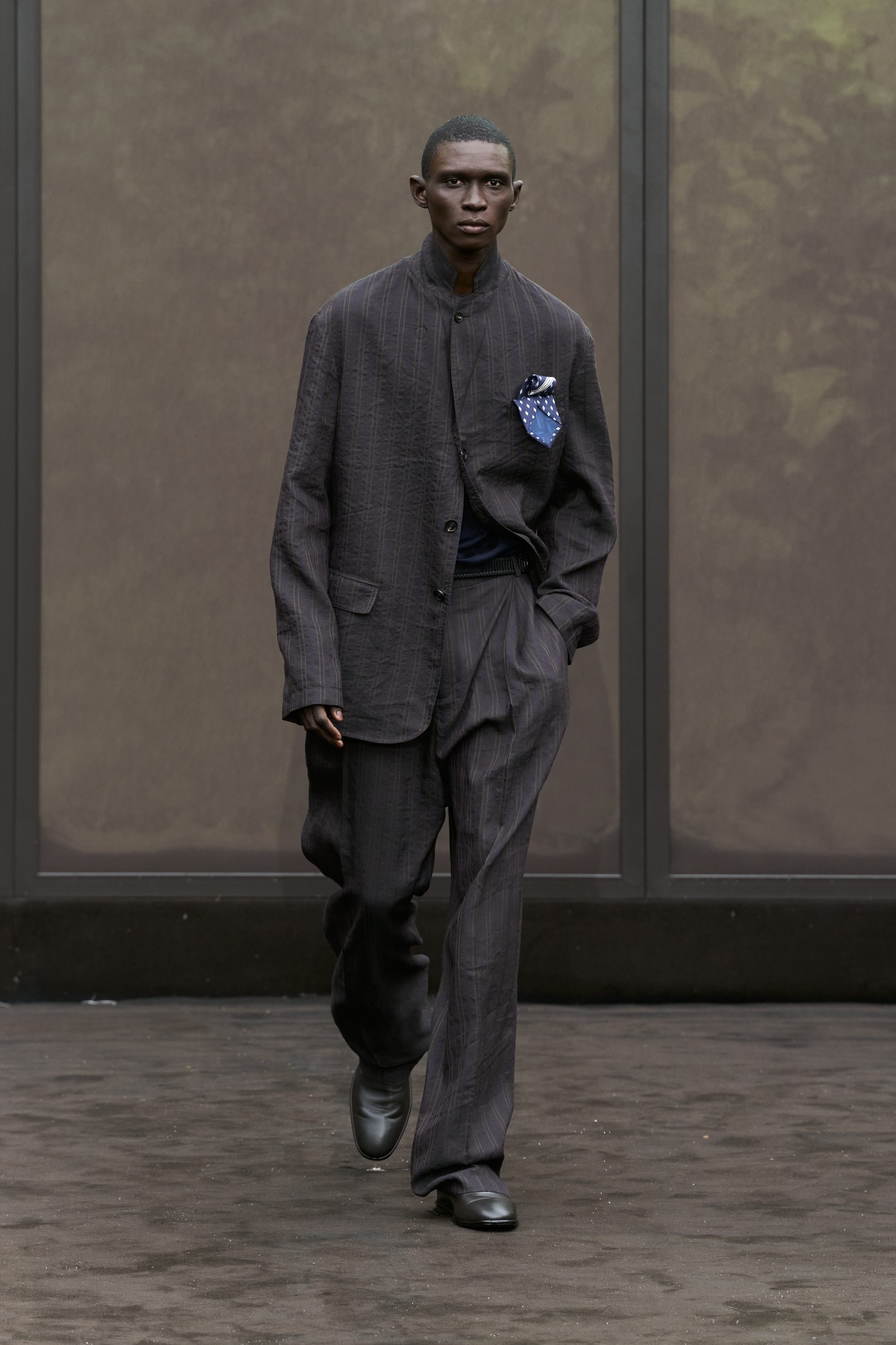 Fantasie animalier, abiti in seta dai tagli asimmetrici e con lunghe frange, trench coat e completi oversize sfilano alla Milano Fashion Week sulla passerella Primavera/Estate 2026 di Ferragamo