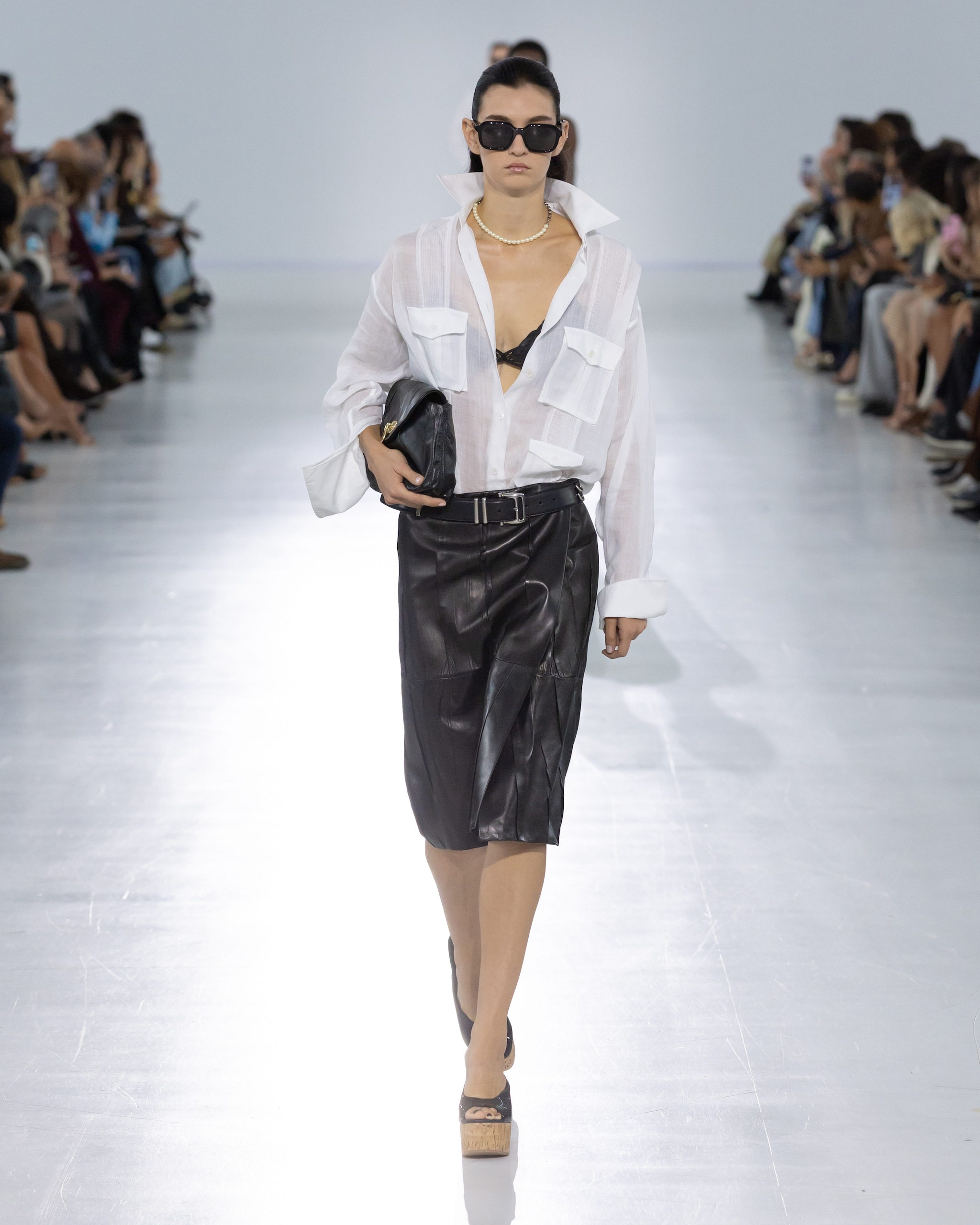 Completi e abiti con stampe a pois, dettagli in pizzo, look in seta e vaporose gonne in tulle sfilano alla Milano Fashion Week sulla passerella Primavera/Estate 2026 di Ermanno Scervino.