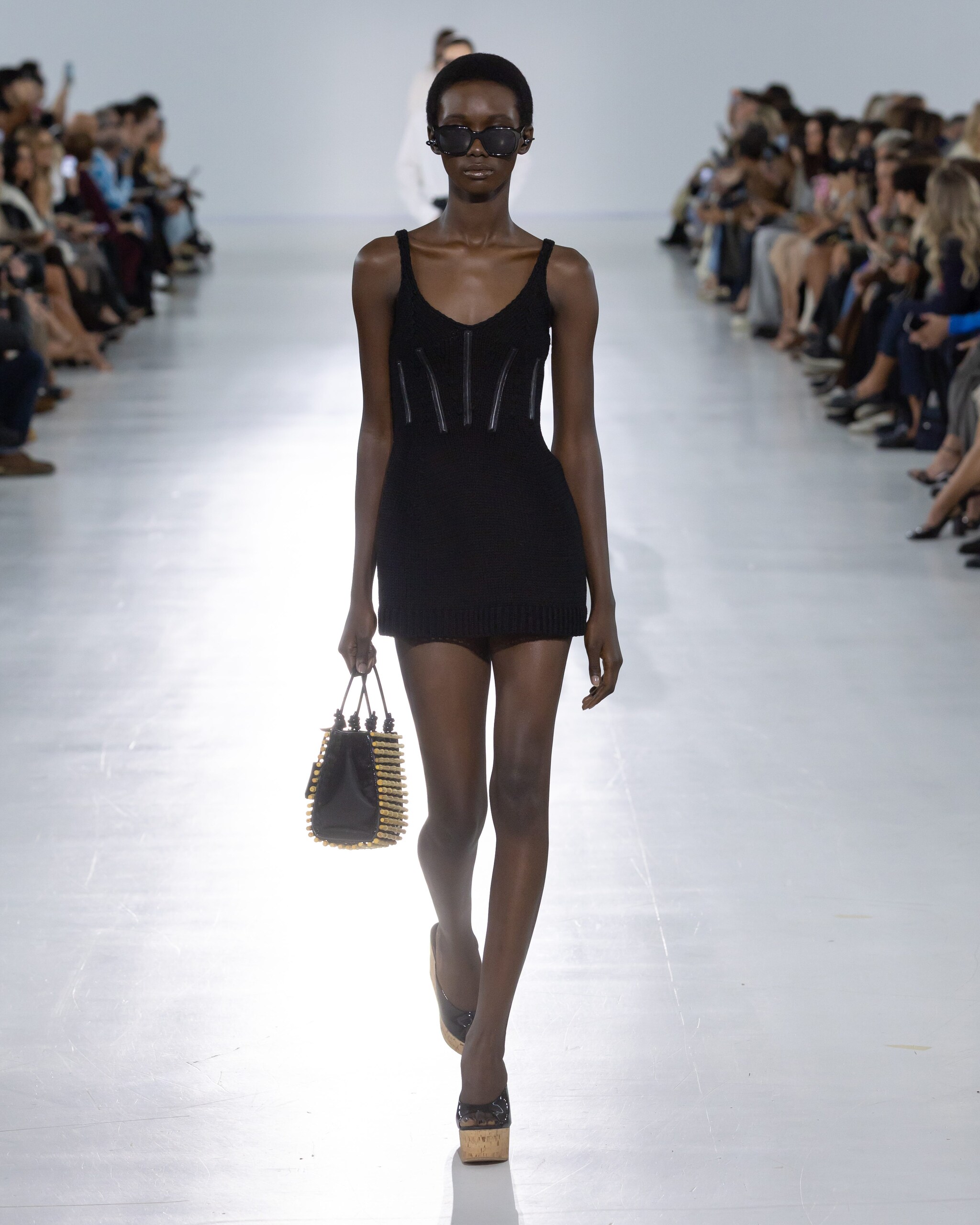 Completi e abiti con stampe a pois, dettagli in pizzo, look in seta e vaporose gonne in tulle sfilano alla Milano Fashion Week sulla passerella Primavera/Estate 2026 di Ermanno Scervino.