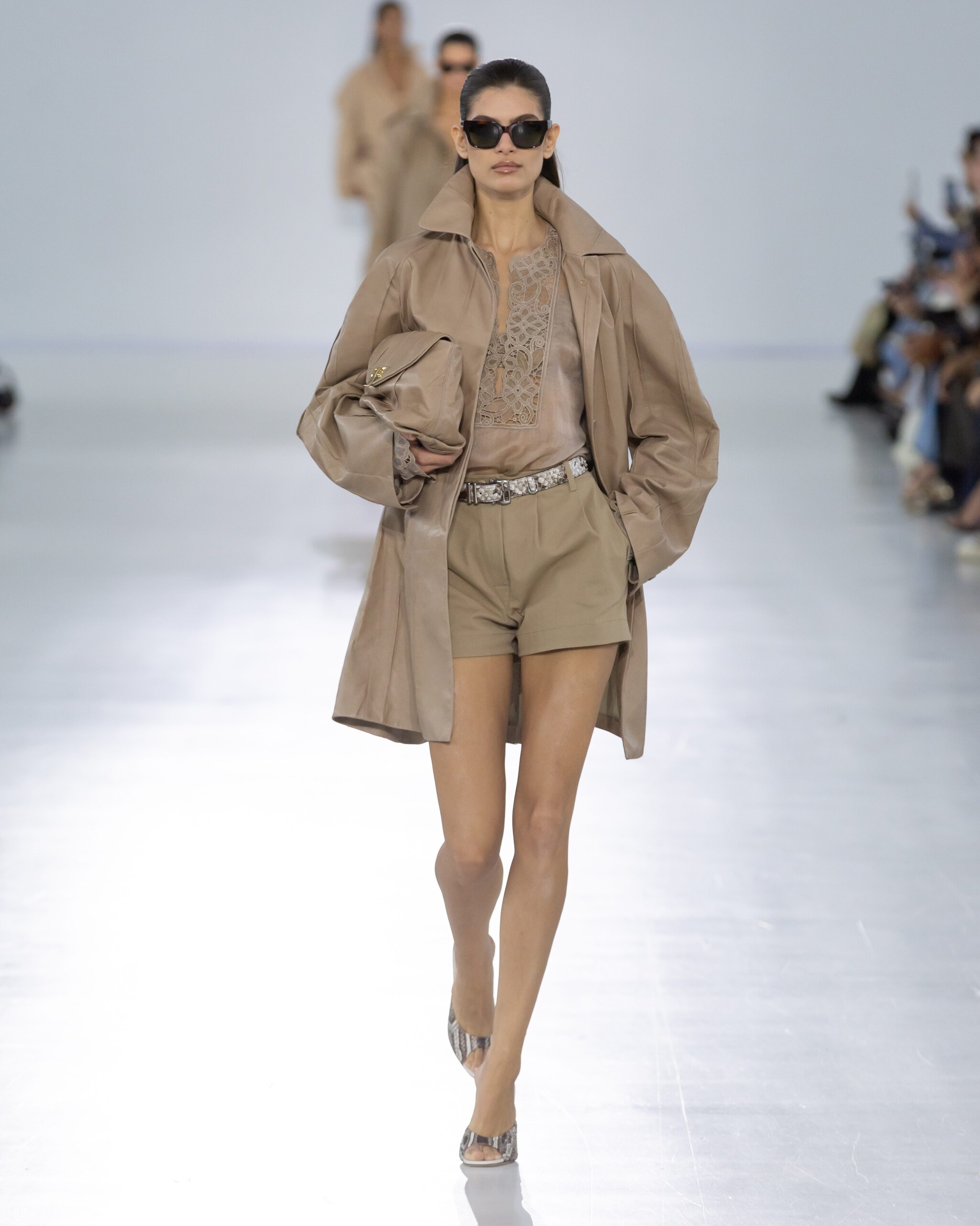 Completi e abiti con stampe a pois, dettagli in pizzo, look in seta e vaporose gonne in tulle sfilano alla Milano Fashion Week sulla passerella Primavera/Estate 2026 di Ermanno Scervino.
