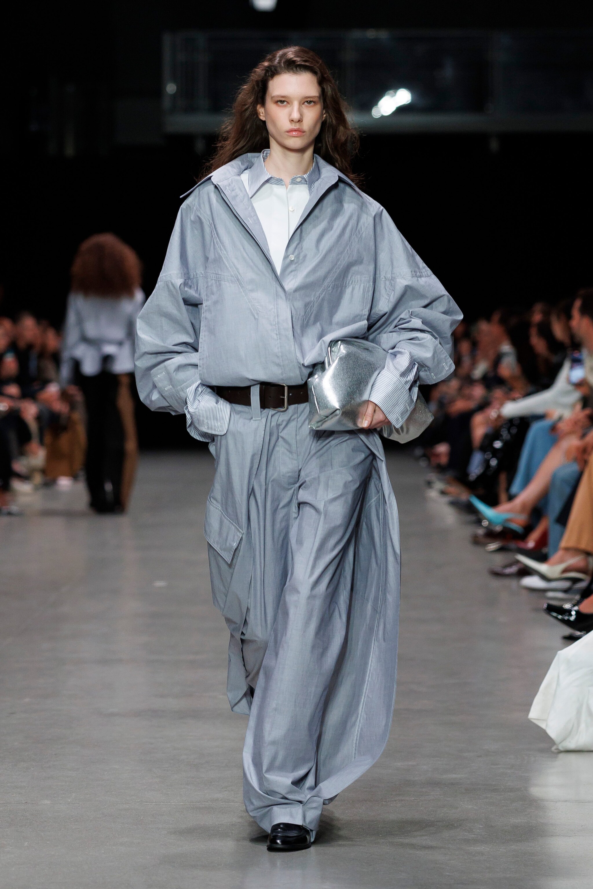 Abiti polo, tubini aderenti, completi con blazer dalle spalle strutturate, stampe floreali e paillettes dai colori nude sfilano alla Paris Fashion Week sulla passerella Primavera/Estate 2026 di Stella McCartney