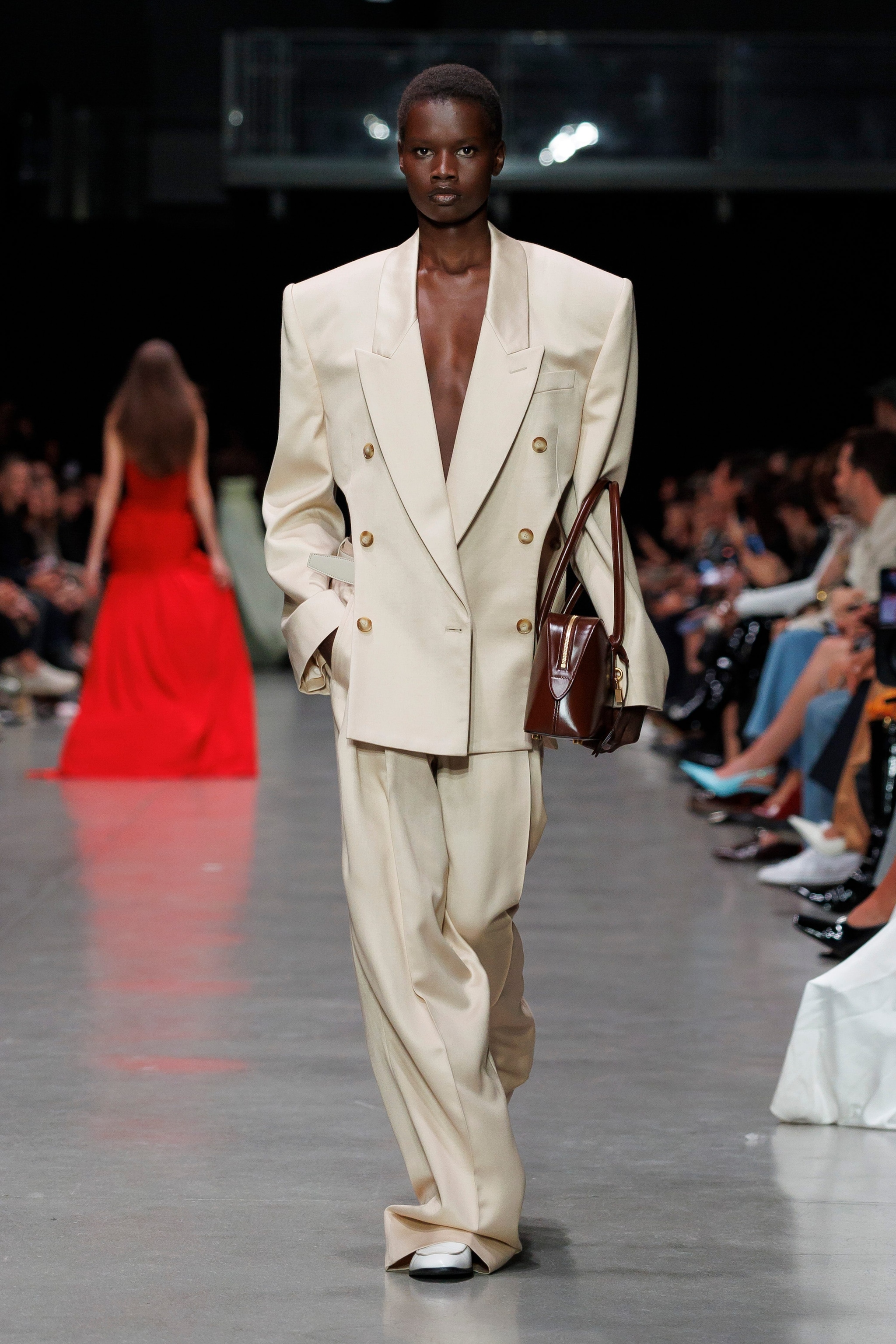 Abiti polo, tubini aderenti, completi con blazer dalle spalle strutturate, stampe floreali e paillettes dai colori nude sfilano alla Paris Fashion Week sulla passerella Primavera/Estate 2026 di Stella McCartney