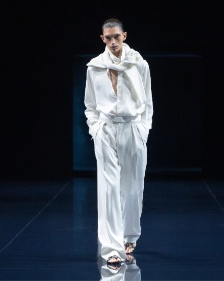 Giacche in suede e completi in pelle colorata, sensuali abiti tunica che aderiscono al corpo senza scoprirlo, slipress e capi in seta e pizzo che ricordano capi intimo o nightwear e ancora sgargianti tocchi di colore acceso sfilano alla Paris Fashion Week sulla passerella Primavera/Estate 2026 di Tom Ford by Haider Hackerman