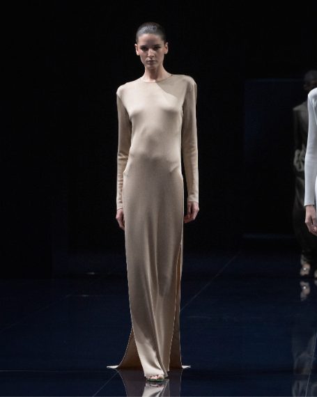Giacche in suede e completi in pelle colorata, sensuali abiti tunica che aderiscono al corpo senza scoprirlo, slipress e capi in seta e pizzo che ricordano capi intimo o nightwear e ancora sgargianti tocchi di colore acceso sfilano alla Paris Fashion Week sulla passerella Primavera/Estate 2026 di Tom Ford by Haider Hackerman
