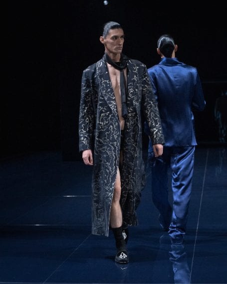 Giacche in suede e completi in pelle colorata, sensuali abiti tunica che aderiscono al corpo senza scoprirlo, slipress e capi in seta e pizzo che ricordano capi intimo o nightwear e ancora sgargianti tocchi di colore acceso sfilano alla Paris Fashion Week sulla passerella Primavera/Estate 2026 di Tom Ford by Haider Hackerman
