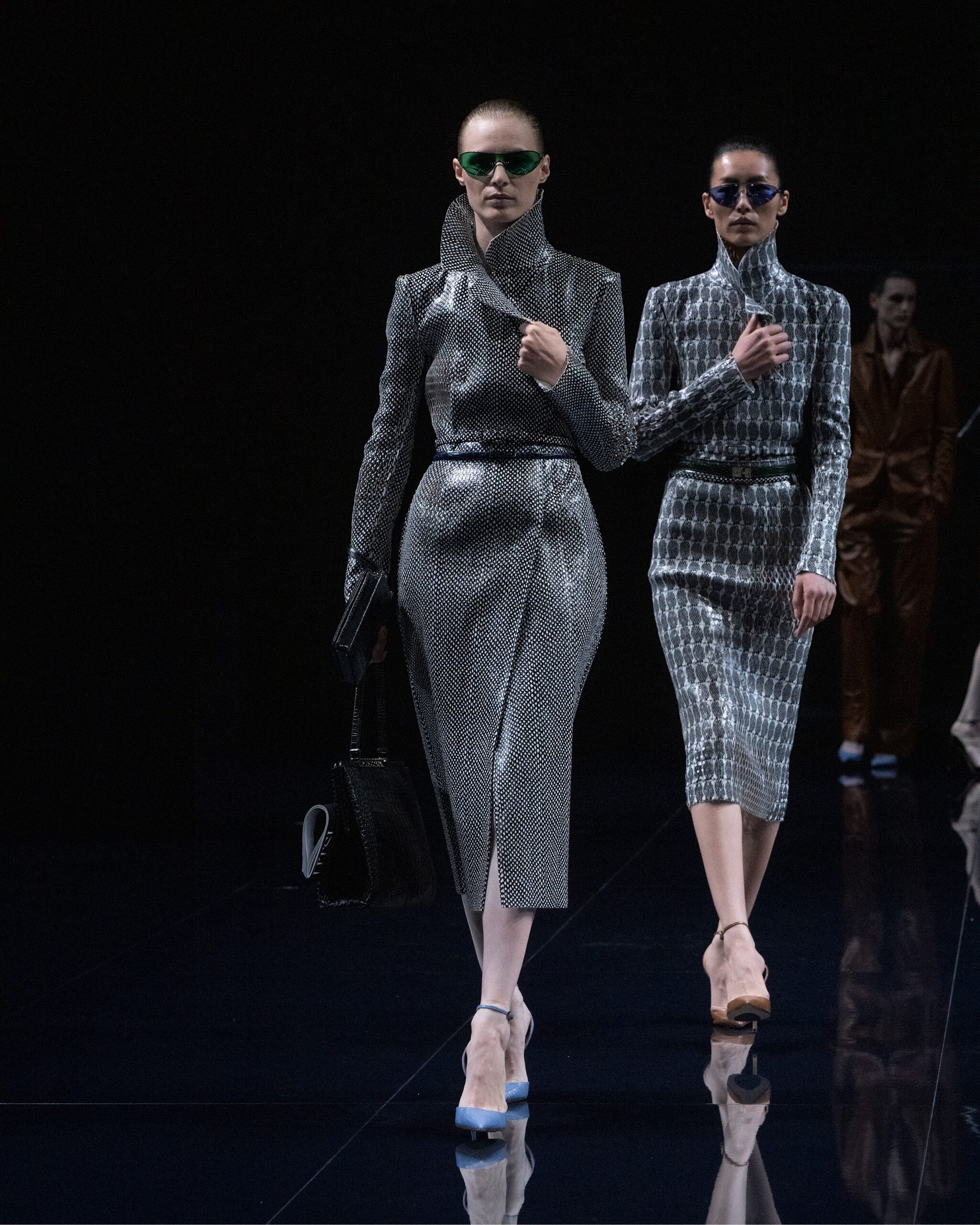 Giacche in suede e completi in pelle colorata, sensuali abiti tunica che aderiscono al corpo senza scoprirlo, slipress e capi in seta e pizzo che ricordano capi intimo o nightwear e ancora sgargianti tocchi di colore acceso sfilano alla Paris Fashion Week sulla passerella Primavera/Estate 2026 di Tom Ford by Haider Hackerman