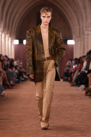 Abiti in pizzo "strappato", denim spalmato, capi tartan e blazer in pelle sfumata sfilano alla Paris Fashion Week sulla passerella Primavera/Estate 2025 di Acne Studios