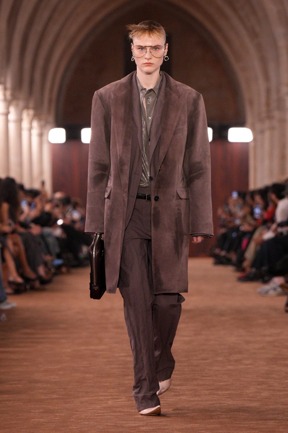 Abiti in pizzo "strappato", denim spalmato, capi tartan e blazer in pelle sfumata sfilano alla Paris Fashion Week sulla passerella Primavera/Estate 2025 di Acne Studios