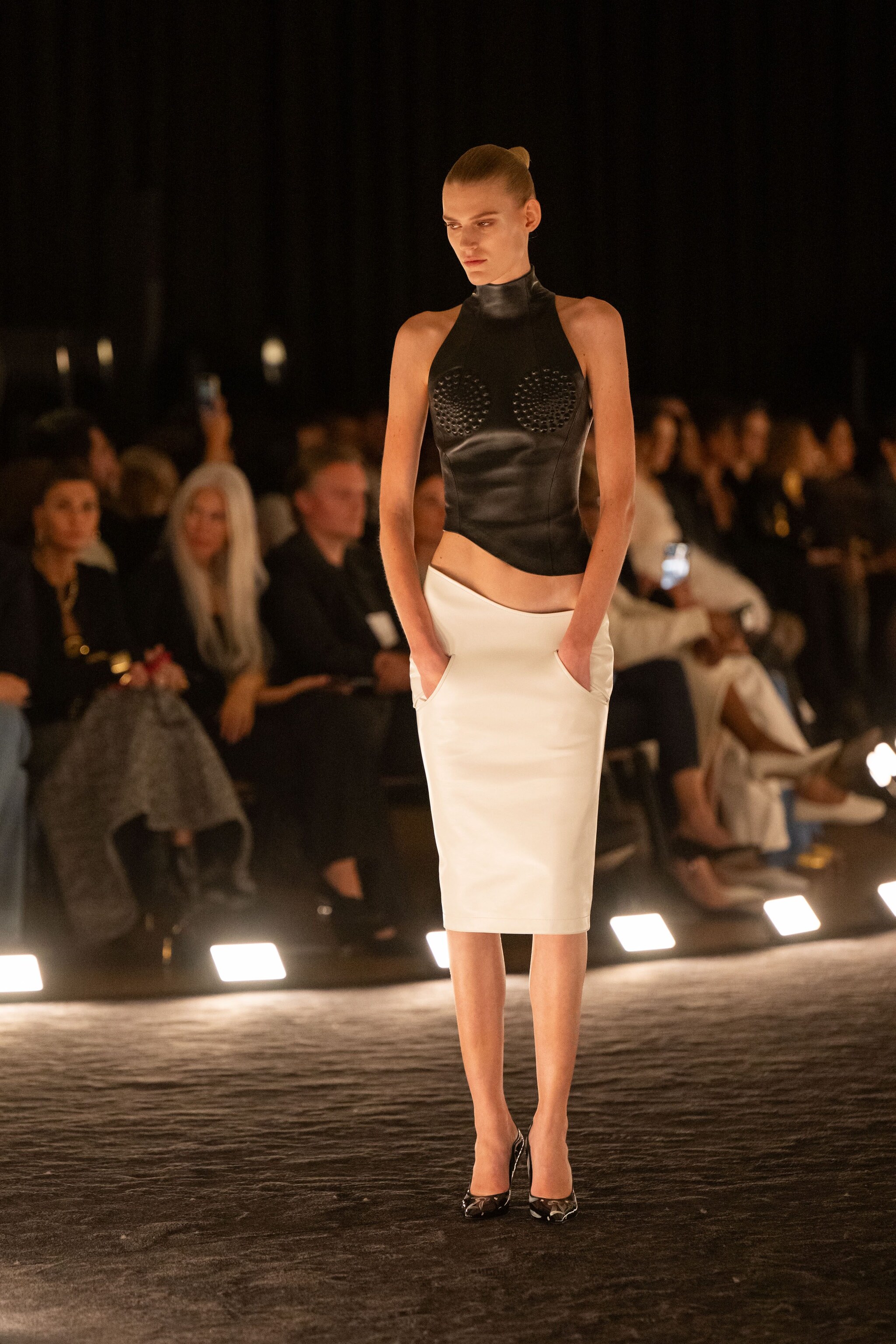 Pois intarsiati nel tessuto, voluminose ruche, abiti in seta impalpabile e tailleur sartoriali dal sapore retrò sfilano alla Paris Fashion Week sulla passerella Primavera/Estate 2026 di Schiaparelli