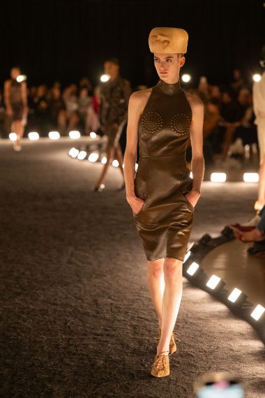 Pois intarsiati nel tessuto, voluminose ruche, abiti in seta impalpabile e tailleur sartoriali dal sapore retrò sfilano alla Paris Fashion Week sulla passerella Primavera/Estate 2026 di Schiaparelli