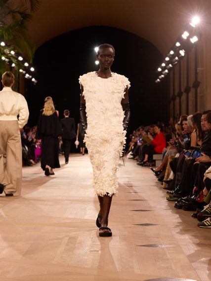 Sfila alla Paris Fashion Week la collezione Primavera/Estate 2026, la prima firmata dal nuovo Direttore Creativo Pierpaolo Piccioli. In passerella sfilano maxi volumi e tagli asimmetrici, vaporose maxi gonne e abiti decorati con frange voluminose e fiori.