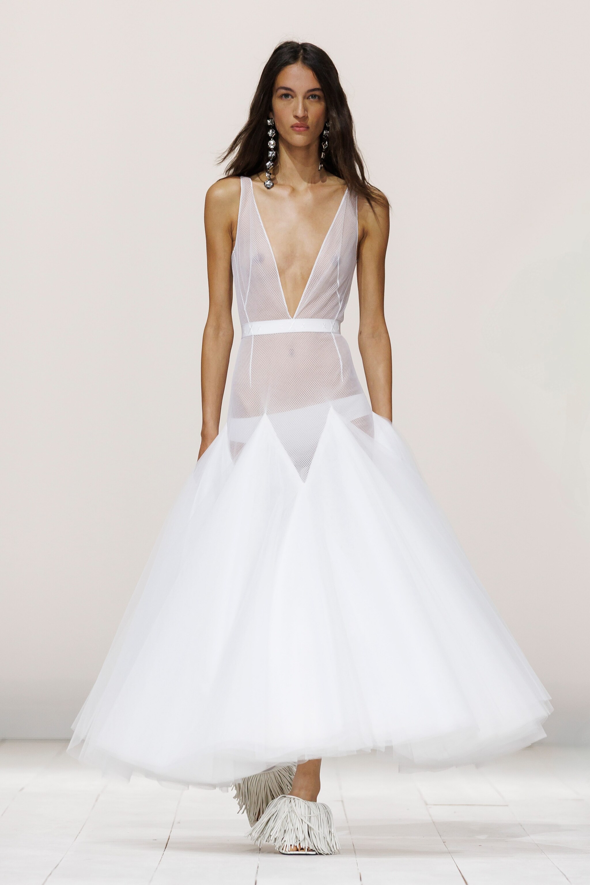 Top reggiseno, jeans a palazzo, camicie oversize, abiti in pelle, drappeggi e tocchi di rosso tra look in black and white sfilano alla Paris Fashion Week sulla passerella Primavera/Estate 2026 di Givenchy by Sarah Burton