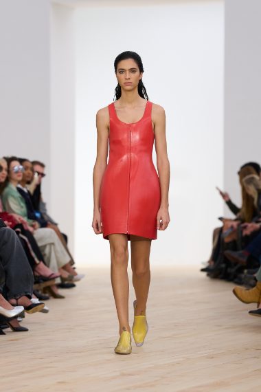 Abiti strutturati, fantasie floreali o rigate, gonne asimmetriche e giacche tecniche sfilano alla Paris Fashion Week sulla passerella Primavera/Estate 2026 di Loewe
