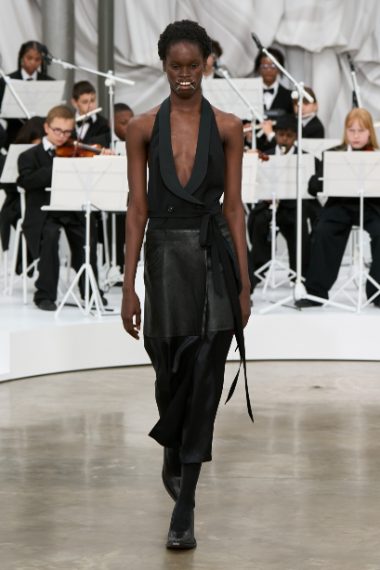 Lunghi abiti in pelle nera e trench in denim, trench oversize abiti florali dai dettagli drappeggiati sfilano alla Paris Fashion Week sulla passerella Primavera/Estate 2026 di Maison Margiela