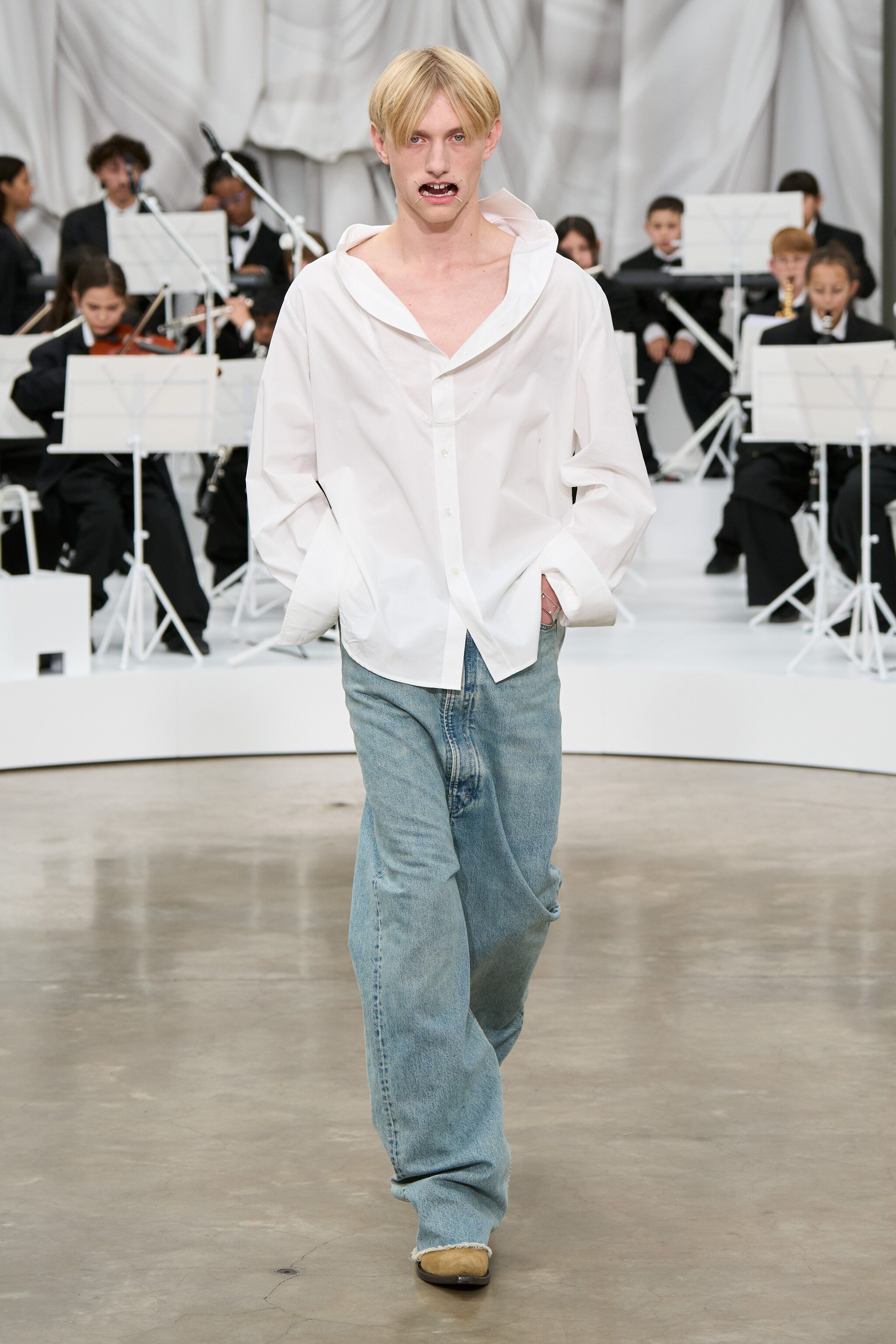 Lunghi abiti in pelle nera e trench in denim, trench oversize abiti florali dai dettagli drappeggiati sfilano alla Paris Fashion Week sulla passerella Primavera/Estate 2026 di Maison Margiela
