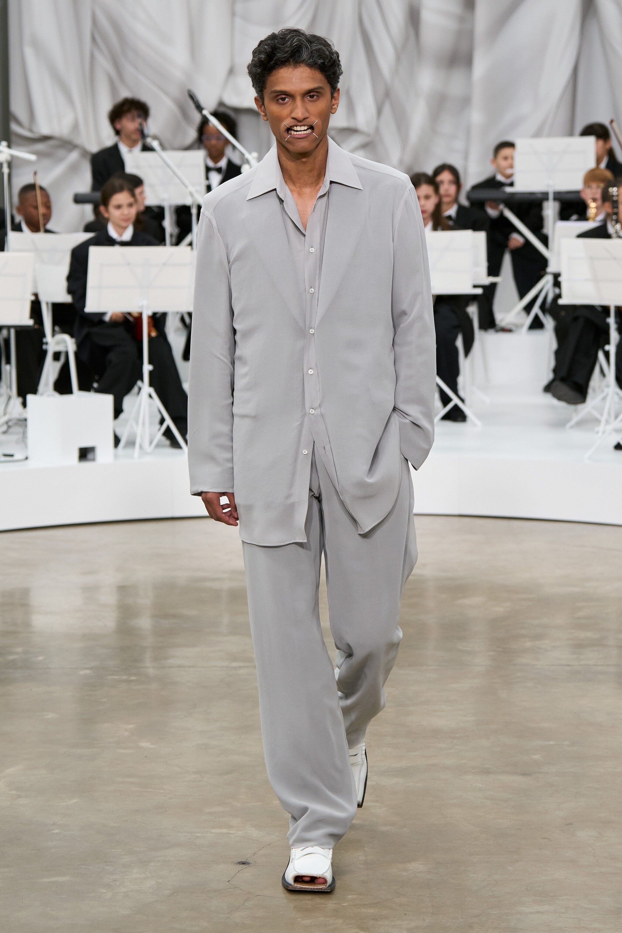 Lunghi abiti in pelle nera e trench in denim, trench oversize abiti florali dai dettagli drappeggiati sfilano alla Paris Fashion Week sulla passerella Primavera/Estate 2026 di Maison Margiela