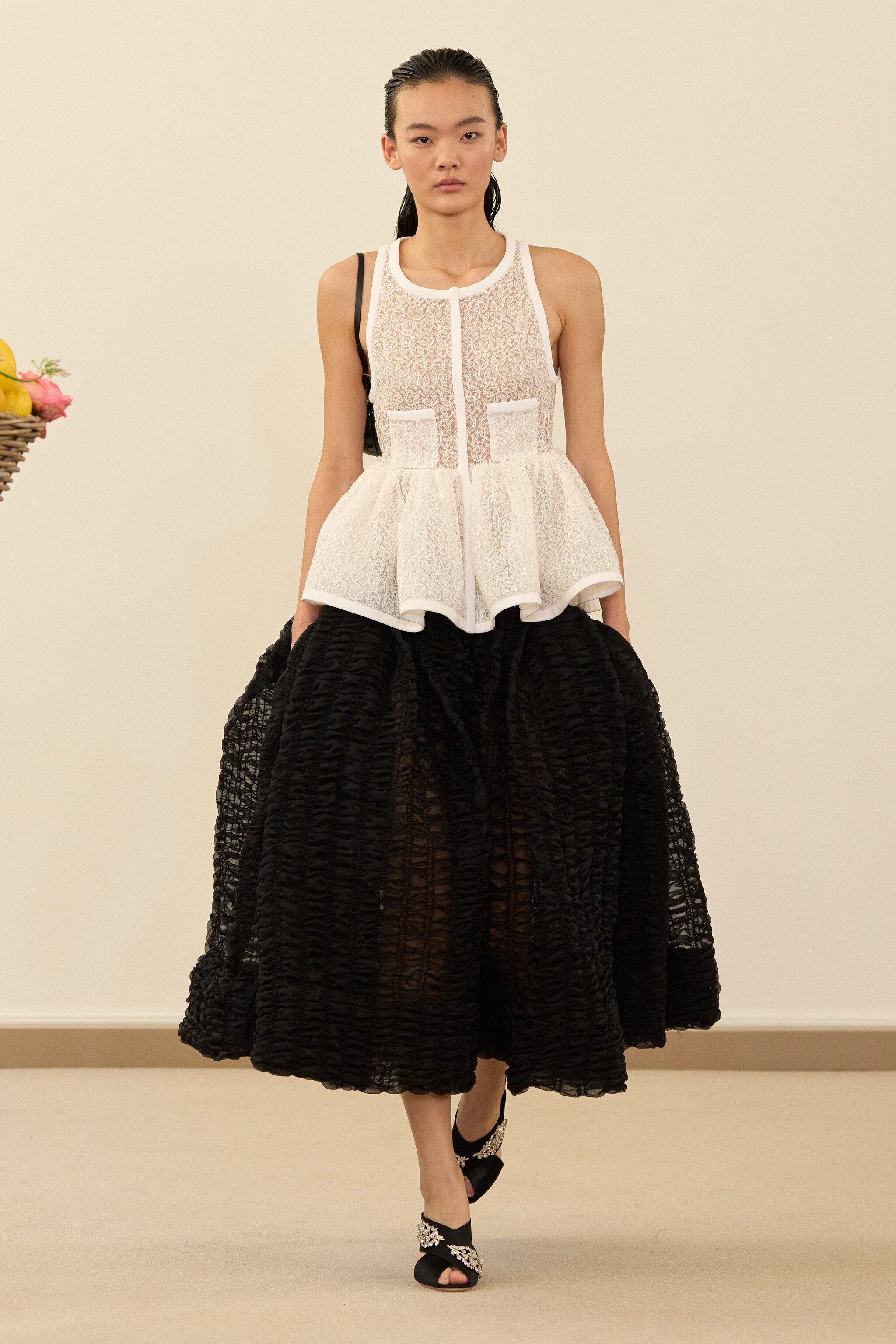Fantasie floreali, gonne balloon e abiti con ruche e volant sfilano alla Paris Fashion Week sulla passerella Primavera/Estate 2026 di Giambattista Valli