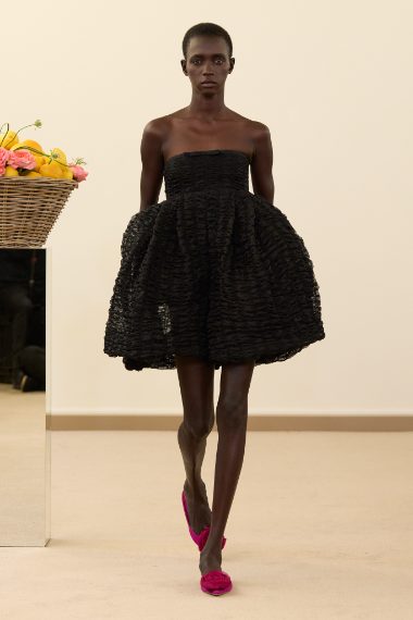 Fantasie floreali, gonne balloon e abiti con ruche e volant sfilano alla Paris Fashion Week sulla passerella Primavera/Estate 2026 di Giambattista Valli
