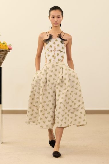 Fantasie floreali, gonne balloon e abiti con ruche e volant sfilano alla Paris Fashion Week sulla passerella Primavera/Estate 2026 di Giambattista Valli