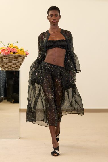 Fantasie floreali, gonne balloon e abiti con ruche e volant sfilano alla Paris Fashion Week sulla passerella Primavera/Estate 2026 di Giambattista Valli