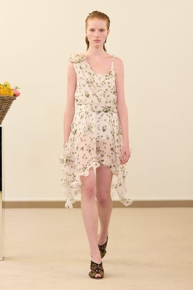 Fantasie floreali, gonne balloon e abiti con ruche e volant sfilano alla Paris Fashion Week sulla passerella Primavera/Estate 2026 di Giambattista Valli